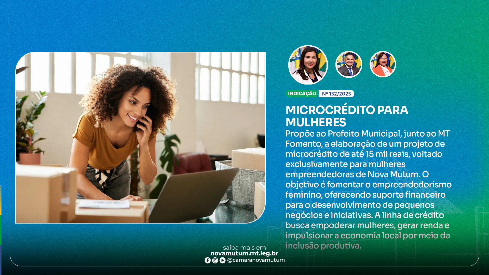 A indicação ressalta o potencial transformador do microcrédito para gerar autonomia financeira, criar empregos e movimentar a economia local. Com taxas acessíveis e prazos compatíveis com a realidade das pequenas empreendedoras, o programa poderia estimular setores como artesanato, alimentação, moda e serviços diversos. A Câmara Municipal demonstra, com esta proposta, seu compromisso em criar políticas públicas que reduzam as desigualdades de gênero no mercado de trabalho e fomentem o desenvolvimento econômico sustentável em Nova Mutum. A matéria agora segue para análise do Executivo, que avaliará a viabilidade da implementação desta política de incentivo ao empreendedorismo feminino.
